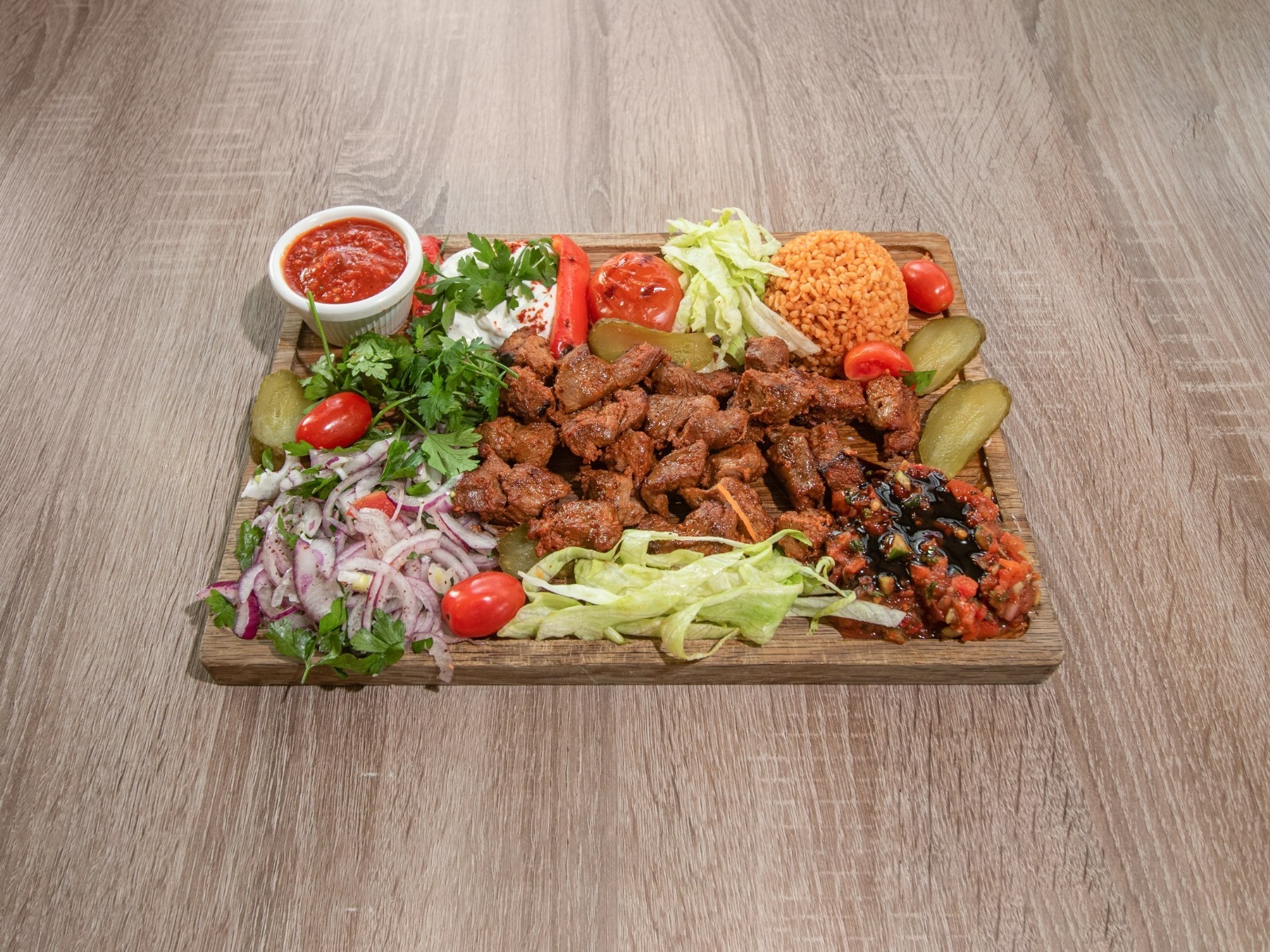 Adana, Kofta, Szisz, grillowane skrzydełka z kurczaka, warzywa, dodatki