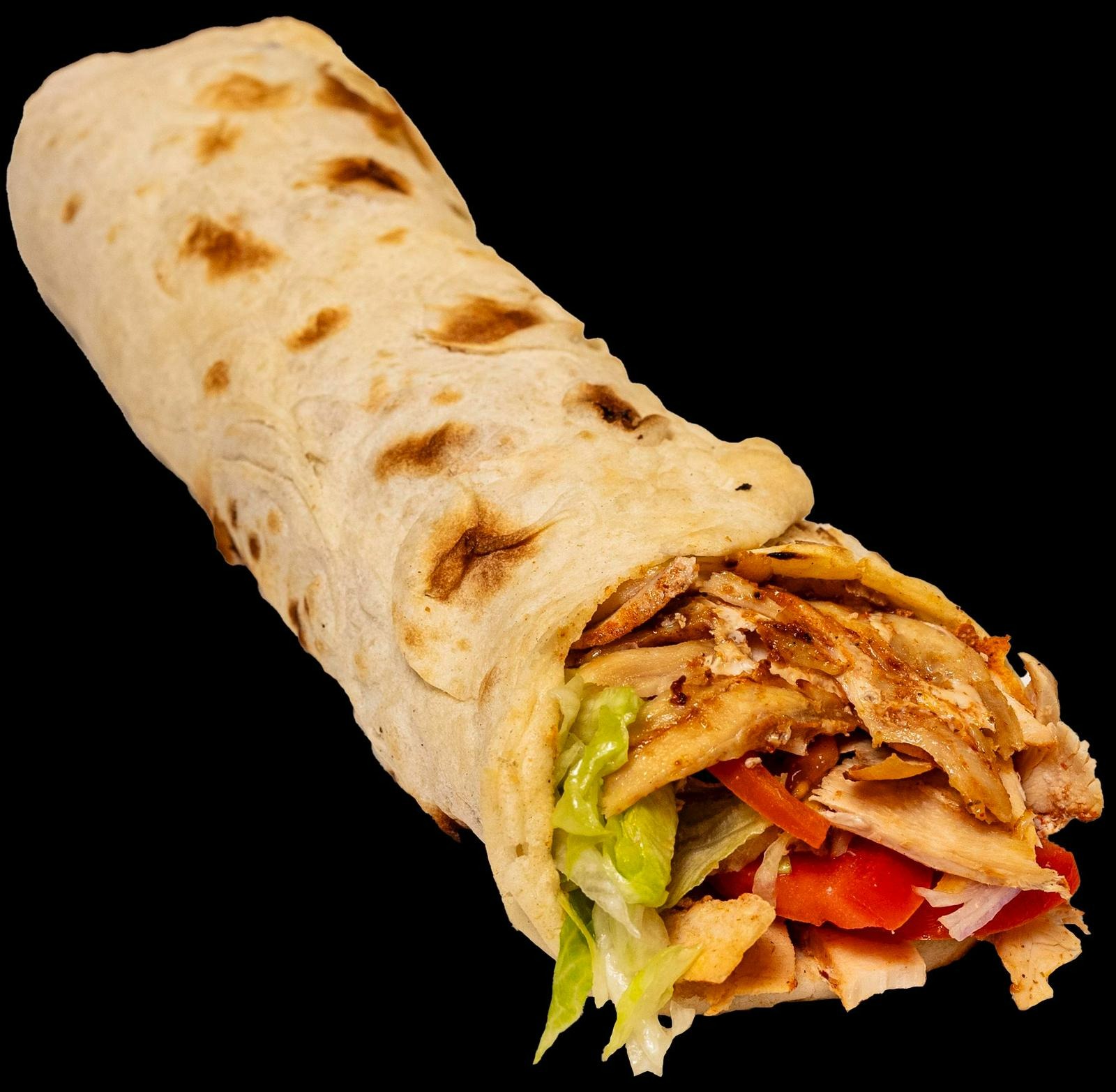 pieczone mięso, pita, surówka, sos, frytki, napój 0,5l